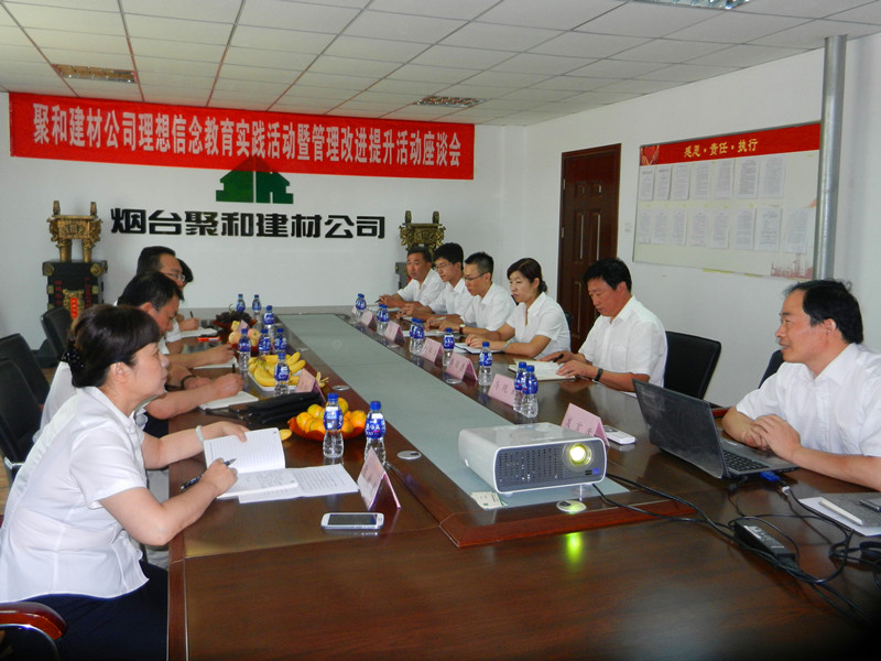 常務副總經理(lǐ)馬現(xiàn)來(lái)首先向集團公司領導彙報(bào)了(le)聚和(hé)建材非公有(yǒu)制(zhì)經濟人(rén)士理(lǐ)想信念教育實踐活動、“強化(huà)責任心、樹(shù)立事(shì)業(yè)心、提高(gāo)忠誠度”活動的(de)開(kāi)展情況以及管理(lǐ)改進提升的(de)方針措施,并結合煙(yān)台砂漿市(shì)場(chǎng)現(xiàn)狀将公司兩年(nián)規劃做(zuò)了(le)詳細闡述。