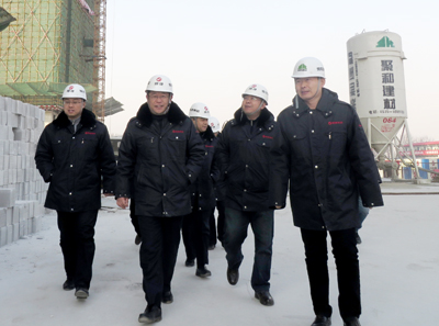 2013年(nián)12月(yuè)31日(rì)上(shàng)午,集團公司常務副總裁孔超在工β程部、技(jì)術(shù)部、五公司等相(xiàng)關部門(mén)和(hé)人(rén)員(yuán)的(de) 陪同下(xià),在五公司古現(xiàn)項目現(xiàn)場(chǎng)觀摩了(le)我公司機(jī)械噴塗抹灰試驗。