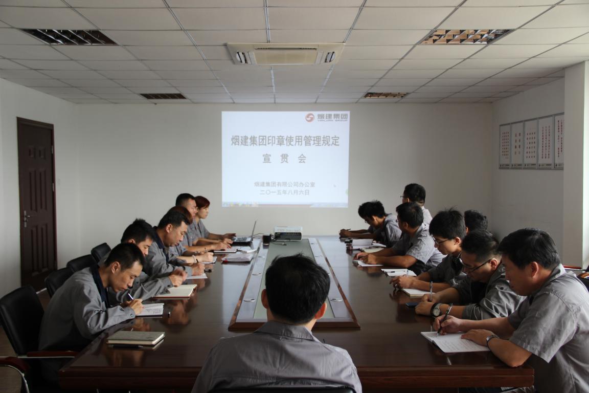 2015年(nián)8月(yuè)18日(rì)上(shàng)午,聚和(hé)建材、東(dōng)泰物(wù)流在駐地(dì)會(huì)議(yì)室組織召開(kāi)《煙(yān)建集團印章(zhāng)使用(yòng)管理(lǐ)規定》宣☆貫會(huì),領導班子(zǐ)成員(yuán)、各處室負責人(rén)參加了(le)會(huì)議(yì)。